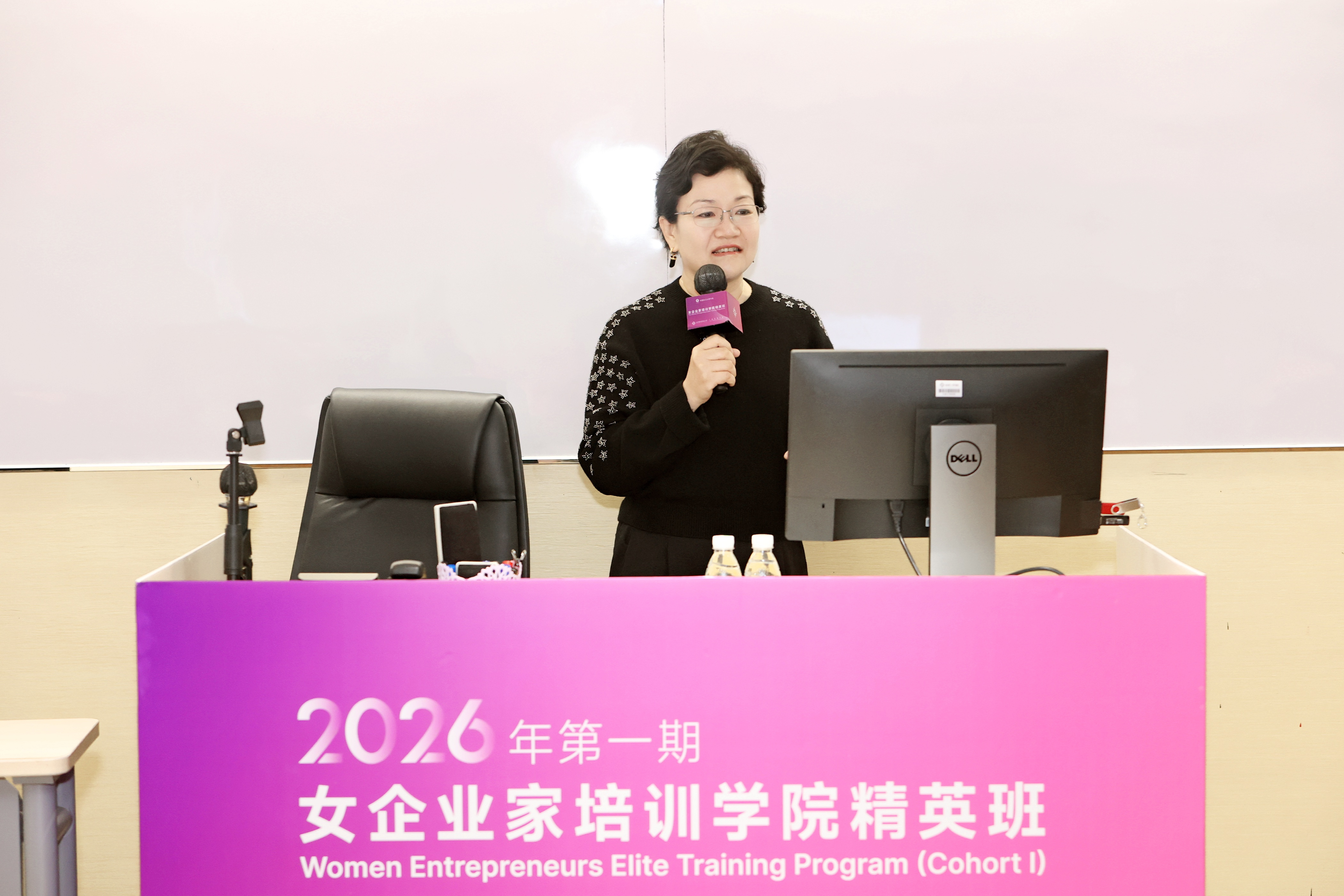 中国女企业家协会副会长安钟岩勉励学员们带着企业发展的痛点,在交流中寻找答案、碰撞灵感